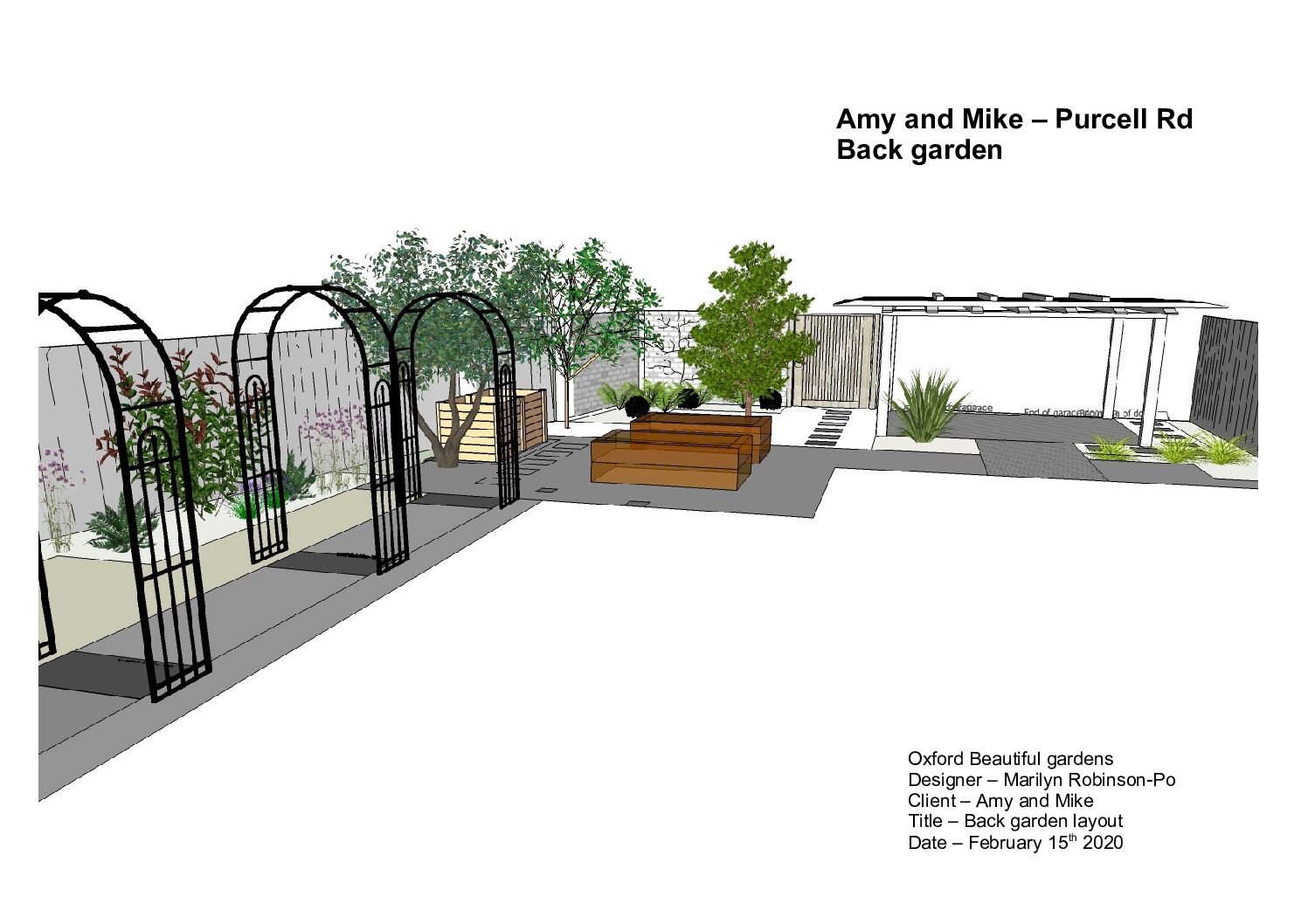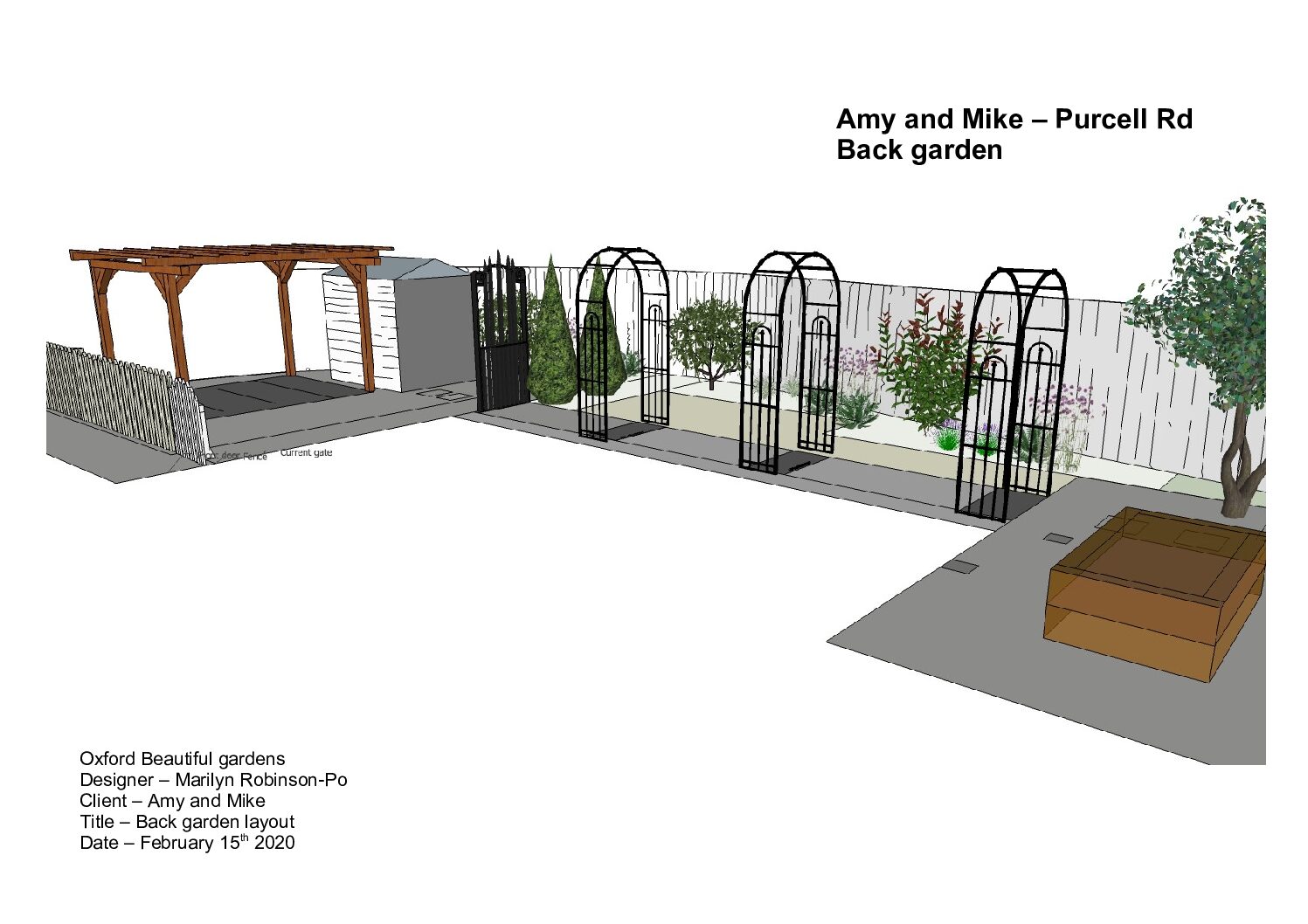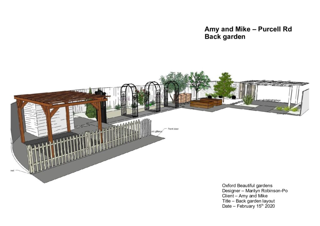 Amy and Michael already had a good idea of how they wanted their garden designed.  Being a south facing garden, shade needed to be provided for them to be able to enjoy it.  It lent itself naturally to a Mediterranean theme and having recently holidayed in Italy this influenced the style.  It worked perfectly as sun loving plants suited for the Mediterranean such as lavender, rosemary and thyme could easily be incorporated as well as exciting roses and climbers.  3D visuals where presented to allow them to get an impression of what the garden would eventually look like.