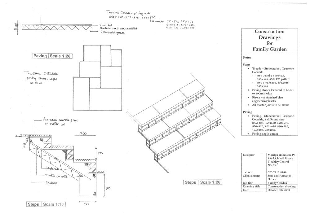 Construction drawings are presented if needed for the hard landscaper.